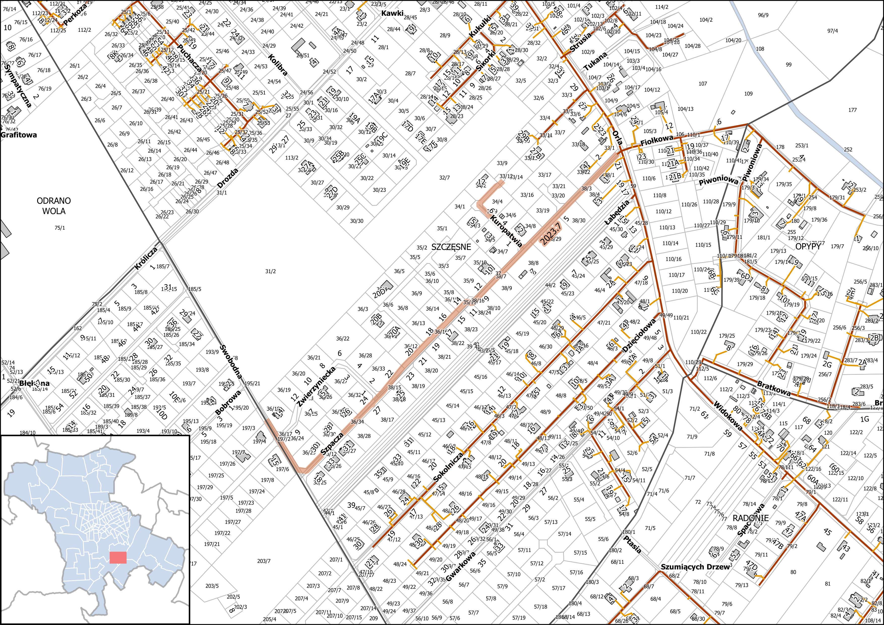 2023.7 Projektowanie i budowa sieci kanalizacji sanitarnej ciśnieniowej w ul.: Kuropatwiej, Szpaczej i Swobodnej (dz. 58 do wysokości dz. 197/3) w m. Szczęsne - planowany termin zakończenia 12.2028