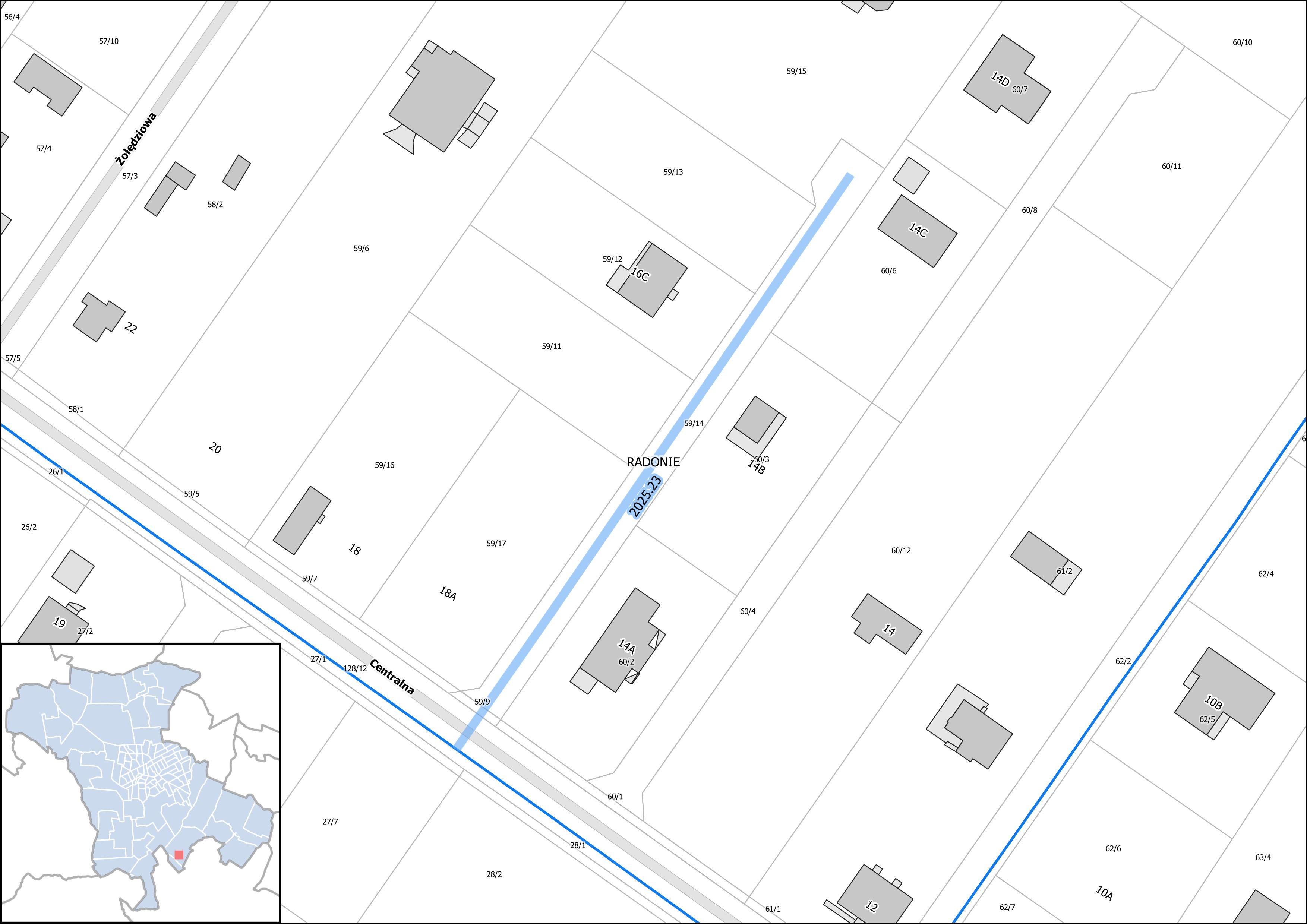 • 2025.23 Projektowanie i budowa sieci wodociągowej w drodze bocznej od ul. Centralnej (dz. 59/14) w m. Radonie - planowany termin zakończenia 12.2027